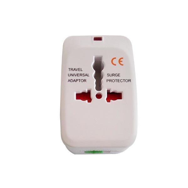 Universal travel adapter with surge protection.