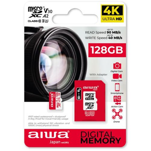 AIWA MICRO SD CARD 128GB CL10 4K WITH ADAPTER