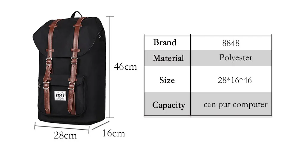 8848 TRAVEL BACKPACK 15,6′ 20,6lt BLACK
