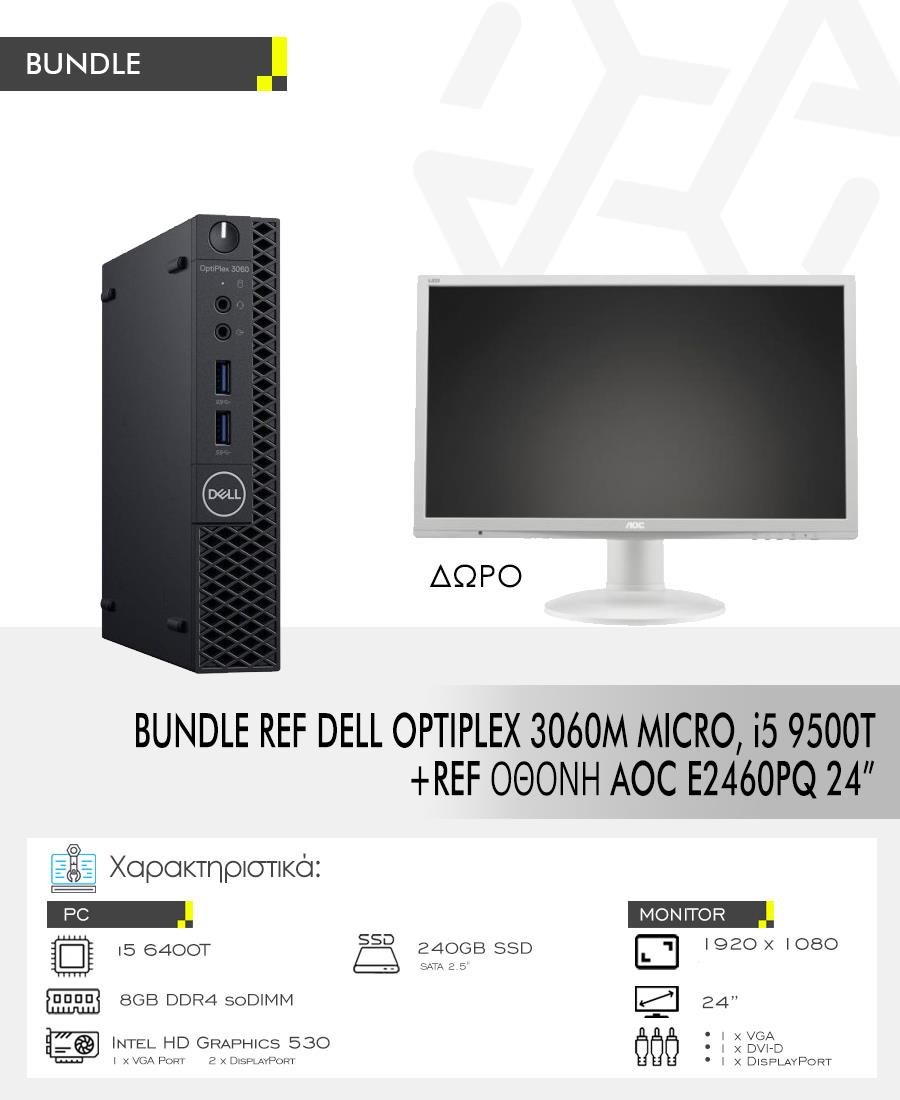 BUNDLE REF DELL OPTIPLEX 3060M MICRO, i5 9500T + REF ΟΘΟΝΗ AOC E2460PQ